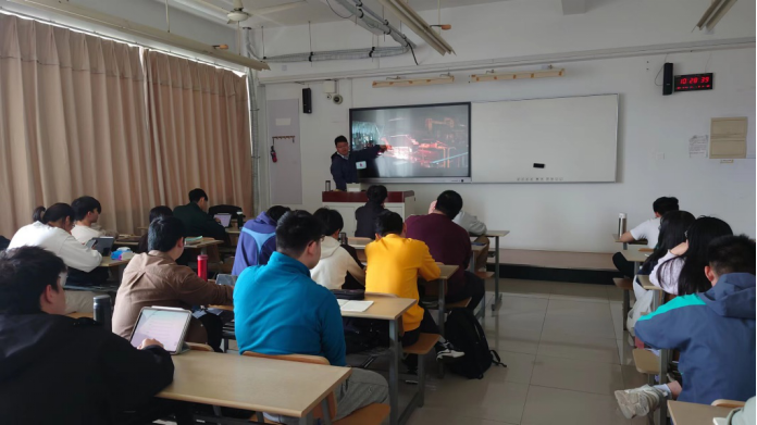 韩杰高工首先介绍了山钢公司概括及科技创新情况,针对特殊钢种类、特点及其冶炼-连铸-轧制的工艺流程和生产装备进行了详细讲解。课程最后预留了10分钟的时间进行了互动环节,让学生们更深入地了解钢铁行业的现状和未来发展趋势。