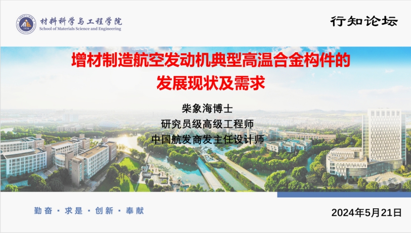 在航空发动机领域,增材制造技术以其创新性和灵活性,成为推动制造业发展的重要力量。5月21日,金沙集团1862cc成色成功举办教师教学发展中心行知论坛,主题为“增材制造航空发动机典型高温合金构件的发展现状及需求”。本次论坛特邀中国航发商发主任设计师,研究员级高级工程师柴象海博士主讲,由材控专业系主任袁建辉担任论坛主持人,吸引了众多教职员工和学生参与,共同探讨增材制造航空发动机典型高温合金构件工程应用中遇到的关键科学问题。
