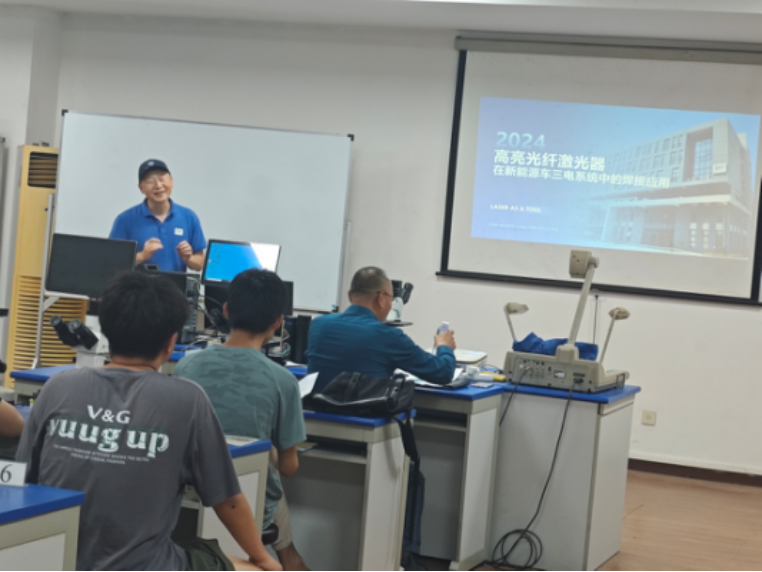 丁建武博士毕业于美国宾尼法尼亚大学电子工程专业,是光纤激光器领域的顶级专家,专注光纤激光器研发近20年,光惠公司是国内第一家使用光电转化效率最高的976nm泵浦技术的公司。目前基于高效节能976nm的万瓦级激光器出货量为国内第一、基于高效节能976nm的20kW万瓦级激光器出货量为全球前二,被市场誉为光加工时代的“新型独角兽”。丁博士系统介绍了光纤激光器在新能源汽车制造中的应用,主要从电机、电控、储能等方面进行了详细的解说,并且举例了许多激光焊接在新能源汽车领域的焊接实例,让学生们了解到激光焊接在新能源汽车制造中有着举足轻重的作用。