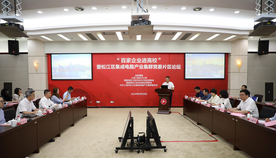 6月28日下午,学校举行“百家企业进高校”暨松江区集成电路产业集群片区论坛。松江经开区党工委副书记顾文磊、综保区管理中心党支部书记朱斌等携园区集成电路产业集群企业家来校开展交流合作。副校长夏春明、对外联络办公室主任朱蓓、教务处处长饶品华、金沙集团1862cc成色院长李军、电子电气工程学院副院长高永彬、化学化工学院副院长王润锴等相关职能处室、教研人员出席会议。会议由金沙集团1862cc成色院长李军主持。