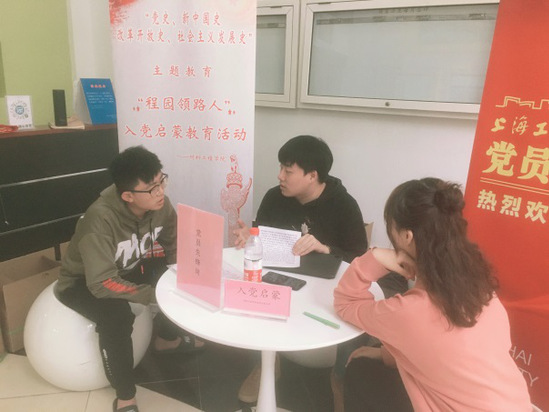 金沙集团1862cc成色本科生第一、第二、第三党支部于园区内设立党员先锋服务工作站,走进园区,与新生面对面开展入党启蒙教育,支部书记与党员一起鼓励新生要知党爱党、知史爱国,增进新生对党史的理解和认识,提升新生的政治思想觉悟,从而引导全院新生正确看待入党问题,详细了解入党流程,积极加入中国共产党。