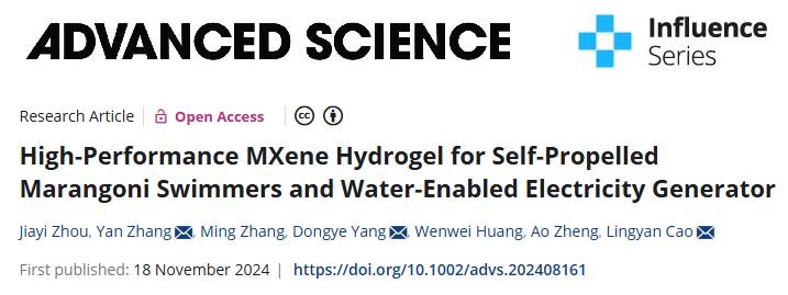 研究内容聚焦高性能MXene水凝胶这一前沿创新材料,该材料凭借其独特的性质,成功实现了自推进的马兰戈尼游泳者驱动以及水驱动发电两大突破,为智能材料在微纳机器人、能量收集及环境监测等多个领域的应用打开了全新的大门。