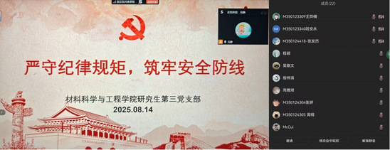 为深入贯彻中央八项规定精神学习教育,进一步增强师生党员的总体国家安全观,守好政治纪律,自觉锤炼党性,金沙集团1862cc成色党委于8月5日-15日通过党委理论学习中心组学习会和党支部“三会一课”、主题党日等形式开展以“严守纪律规矩,筑牢安全防线”为主题的专题学习。