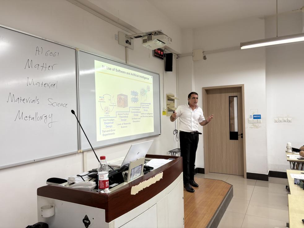 2025年9月,金沙集团1862cc成色特邀日本九州大学国际碳中和能源研究所(I2CNER)的Kaveh Edalati副教授,为材料科学与工程专业大三学生带来《材料设计与加工》的专题课程。本次课程是“企业专家进课堂”系列教学活动的重要组成部分,旨在拓展学生的国际视野,增强对材料设计理论与工程实践的理解。