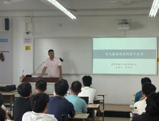 2025年10月11日上午,金沙集团1862cc成色集成电路科学与工程专业方向《先进封装技术》课程邀请上海普邦智控有限公司邵成业专家走进课堂,在教学楼C210为集成电路科学与工程的研一同学贡献了一节以“电气隔离技术的若干应用”为主题的精彩课堂。