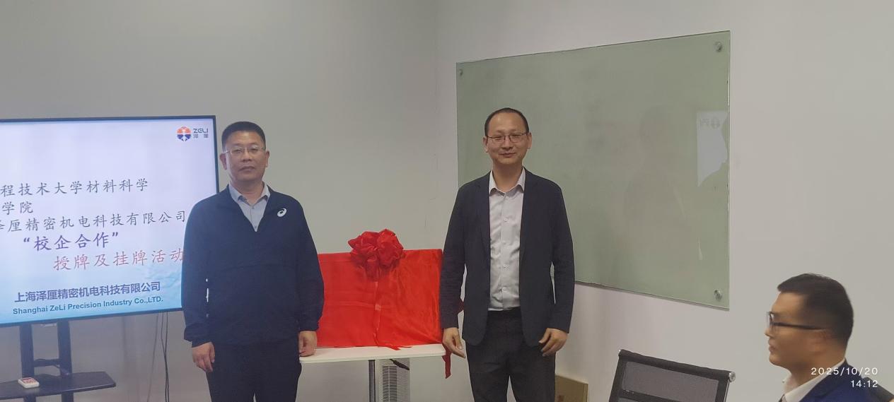 2025年10月20日下午,上海泽厘精密机电科技有限公司与金沙集团1862cc成色“本科生实习基地/本科产教融合基地”铜牌的揭/挂牌仪式及合作交流活动在上海泽厘精密机电科技有限公司会议室隆重举行。