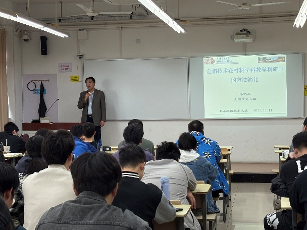 2025年11月11日上午,在教学楼B103教室,上海交通大学金沙集团1862cc成色陈秋龙副教授,携《金相技术在材料学科教学科研中的方法演化》主题报告,为我校材料科学与工程专业2022级学子,带来一场兼具理论深度与实践指导的学术分享。