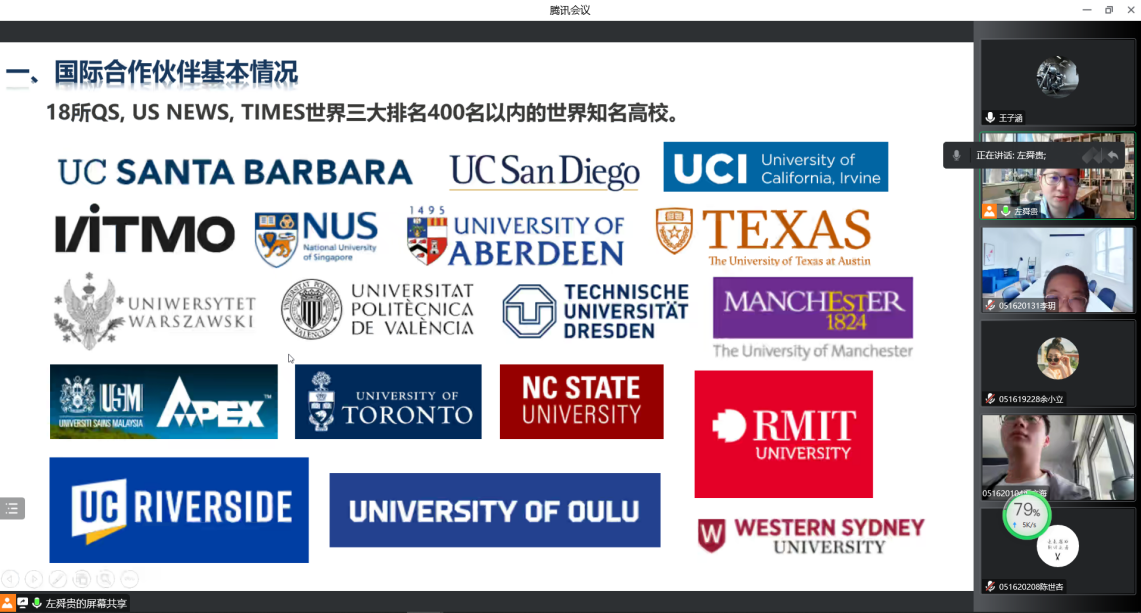 首先,左老师介绍了国际合作伙伴的一些基本情况。不难看出,全球多个国家和地区都有与我校合作的国际伙伴,不仅如此,这些伙伴还都有着较高的国际知名度。