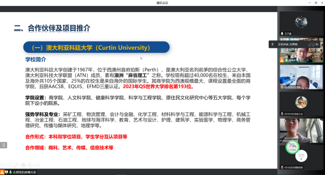 紧接着,老师又重点介绍了几位合作伙伴的详细情况及我校与之合作的形式与领域。