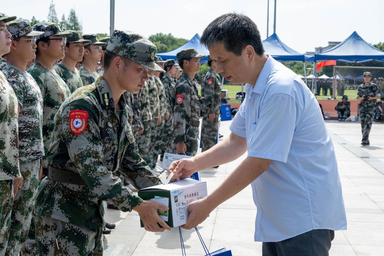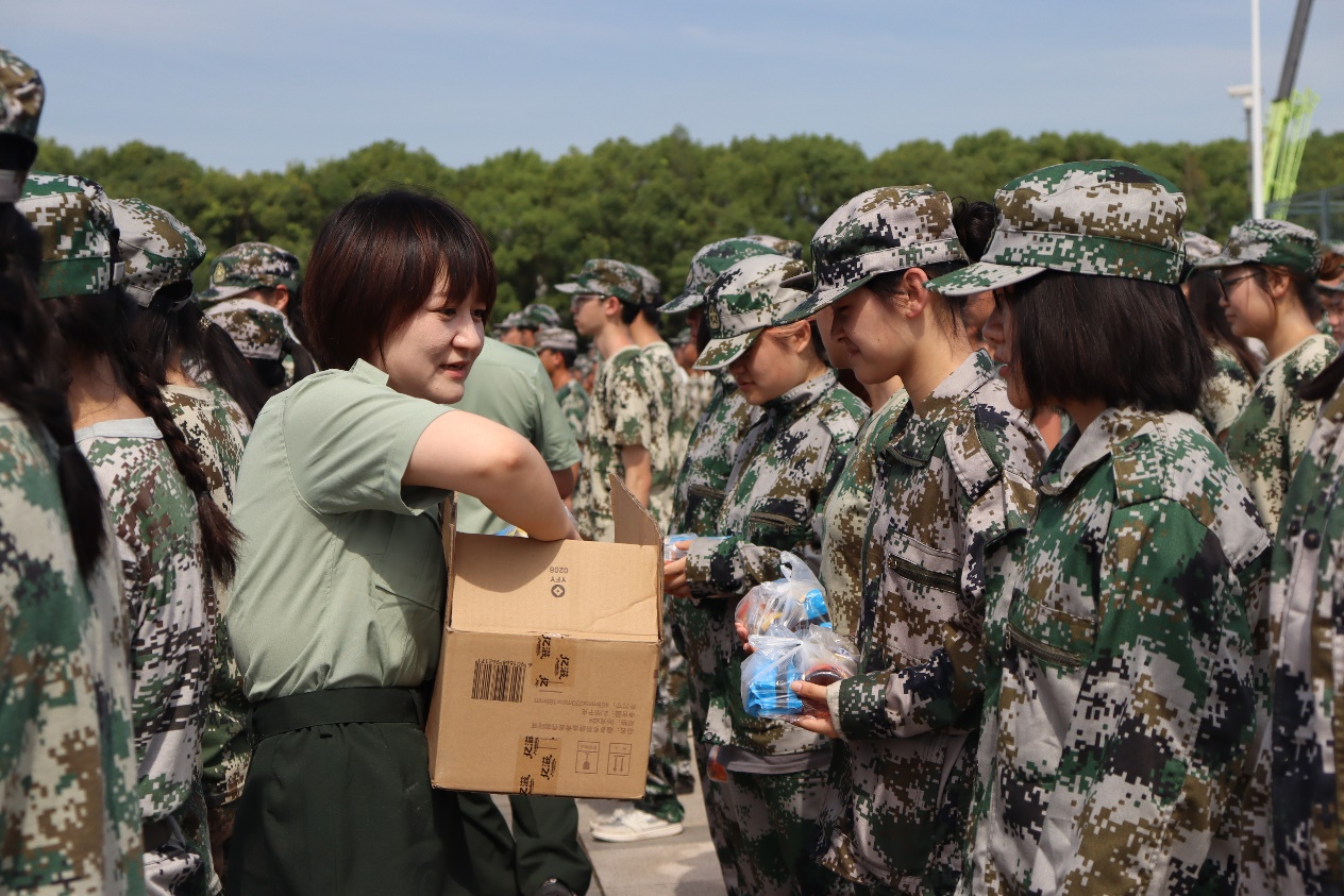 学院领导为全体军训教官和学生发放慰问品。此次慰问活动体现了院领导对军训工作的高度重视,让同学们感受到了来自学院的温暖,肯定了同学们展现出的昂扬斗志,并激励大家在之后的训练中再接再厉,以更饱满的热情完成接下来的军训任务。